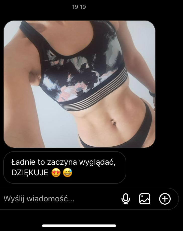 Z Bartoszem trenuję od ponad roku. Już podczas konsultacji wiedziałam, że to będzie bardzo dobry wybór dla każdej kobiety. Atmosfera podczas treningów jest luźna, a on sam dba o poczucie bezpieczeństwa, co przekłada się na zaufanie i komfort każdego treningu. Z nim efekty przychodzą szybciej i łatwiej, ponieważ swoje doświadczenie przekłada na indywidualne podejście do każdego, kogo prowadzi. W programie Perfect Shape nauczyłam się dbać o swoją sylwetkę bez wyrzeczeń. Regularne treningi poprawiły moją kondycję i siłę, co jest zauważalne w wielu codziennych aktywnościach. Dodatkowo dieta, którą rozpisuje Bartosz jest dostosowana do moich preferencji, dzięki czemu nauczyłam się jak intuicyjnie dobierać produkty, aby zadbać o odpowiednie odżywienie organizmu bez nadwyżki kalorycznej. To wszystko przełożyło się na zwiększenie pewności siebie oraz lepsze samopoczucie. Dziękuję za wprowadzenie w świat siłowni, w który sama nigdy bym nie weszła 🫶